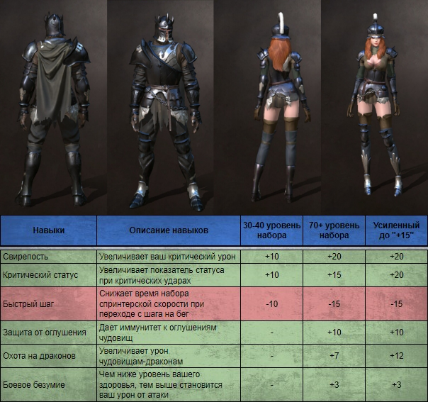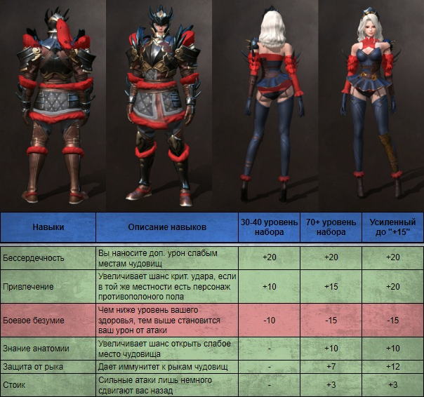 Данный сет увеличит восстановление выносливости, а при длительном бое с чудовищем, каждые 30 секунд увеличивает показатель крит. шанса и крит. урона. Доступен на 30 уровне после убийства Ревуна.