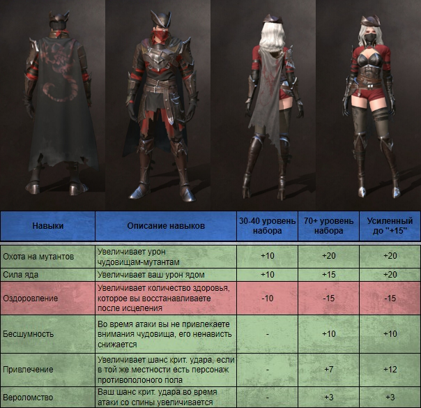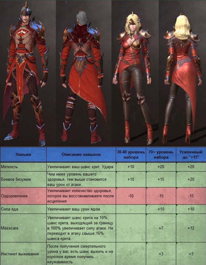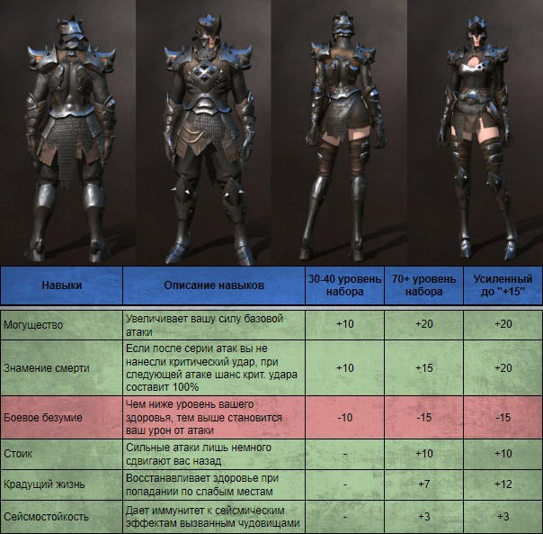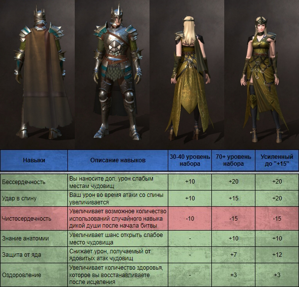 Набор скорее для ближнего боя, так как лучники и маги менее мобильны с точки зрения перемещения вокруг босса, будет сложно акцентироваться на ударах в спину. Доступен на 30 уровне после убийства Квакуна.