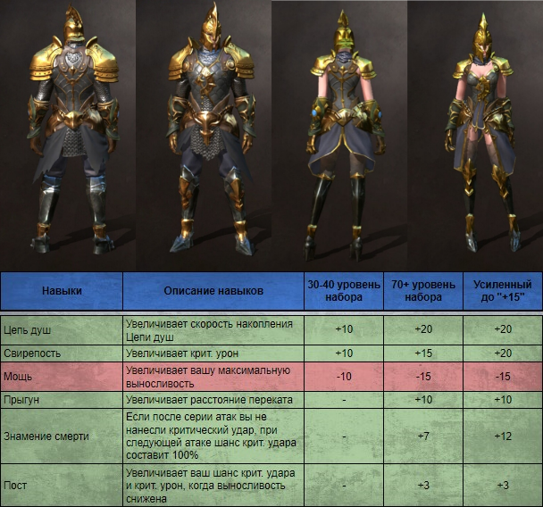 Хороший набор для увеличения крит. урона, благодаря "знамениям смерти" может рассматриваться альтернативой для сета Рогача. Доступен на 40 уровне после убийства Голема.