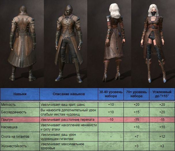 Набор повышающий выживаемость и мобильность во время схватки с боссом. Незначительное повышение атаки. Доступен на 50 уровне после убийства Химеры.
